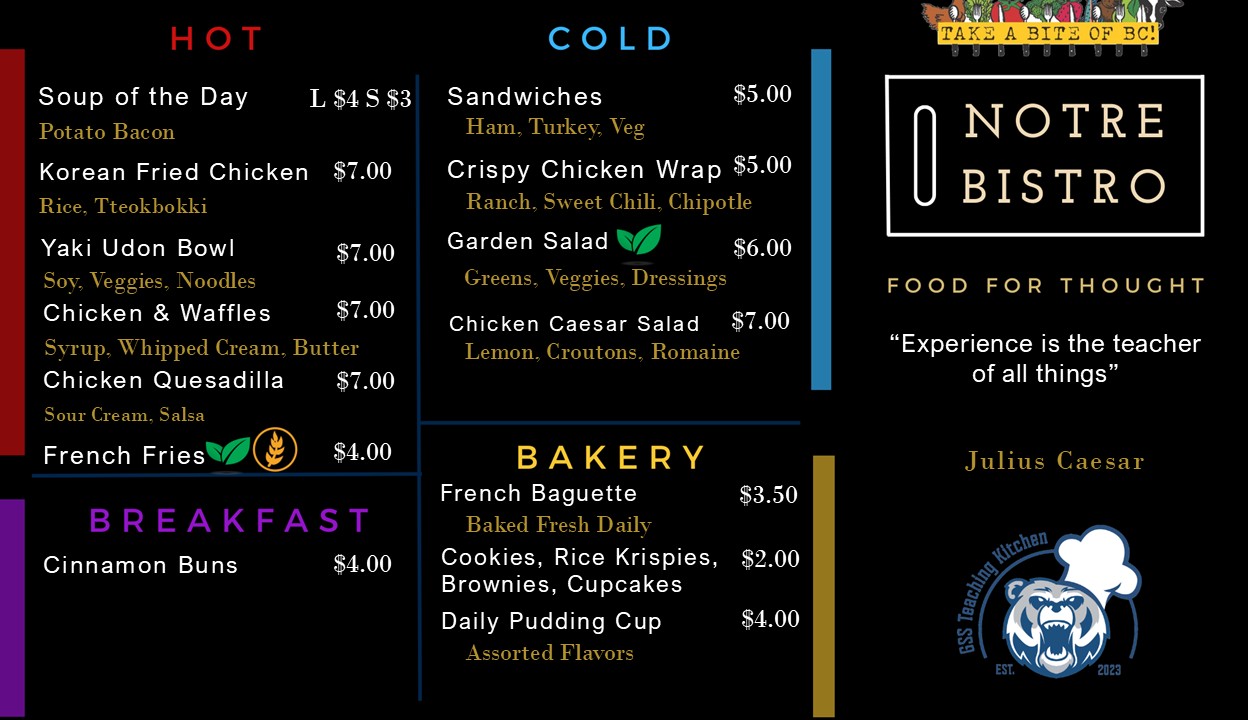 Notre Bistro featuring local BC Products