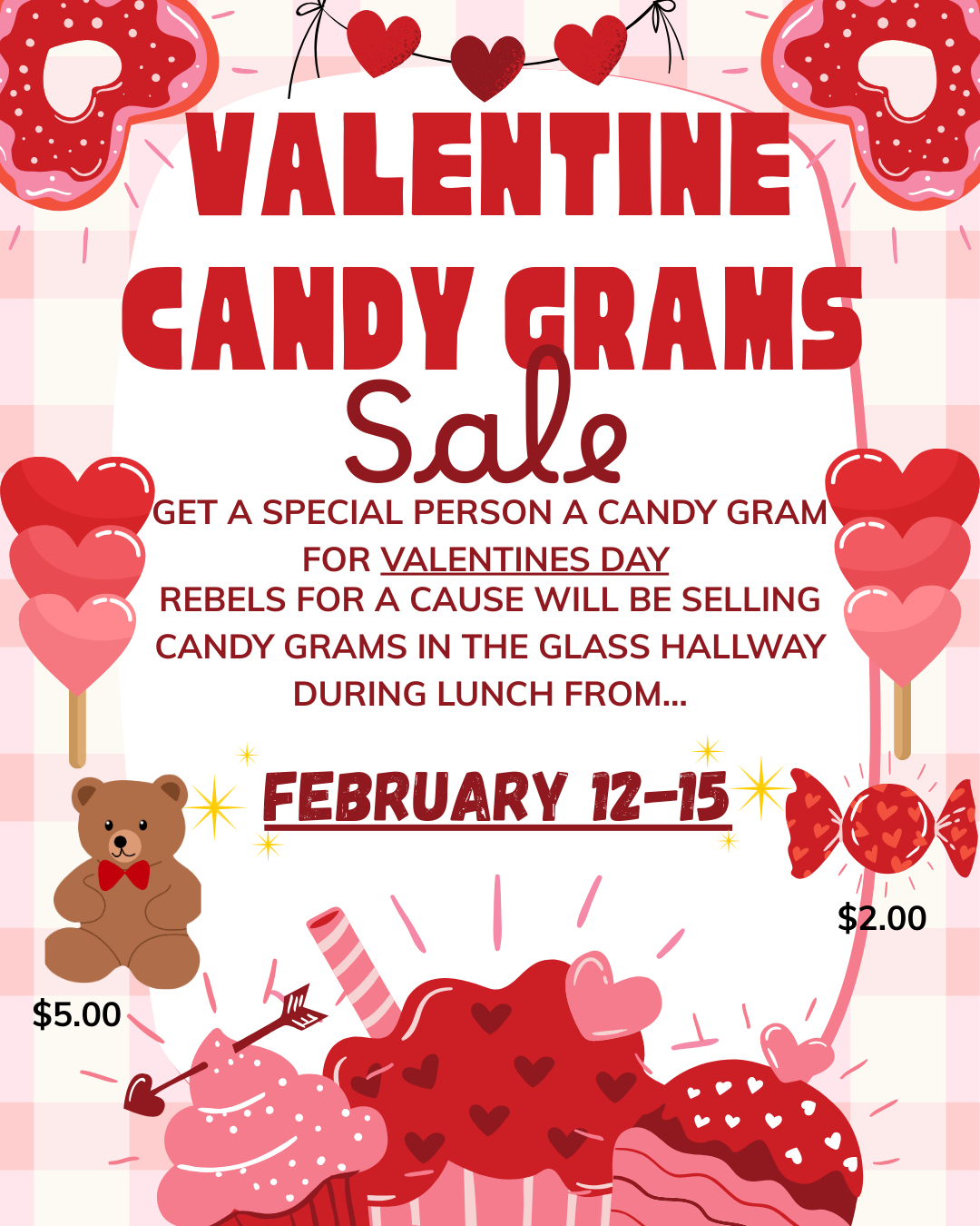 Remember: February 9th to the 12th …..Rebels for a Cause …..Valentine’s Bake Sale.