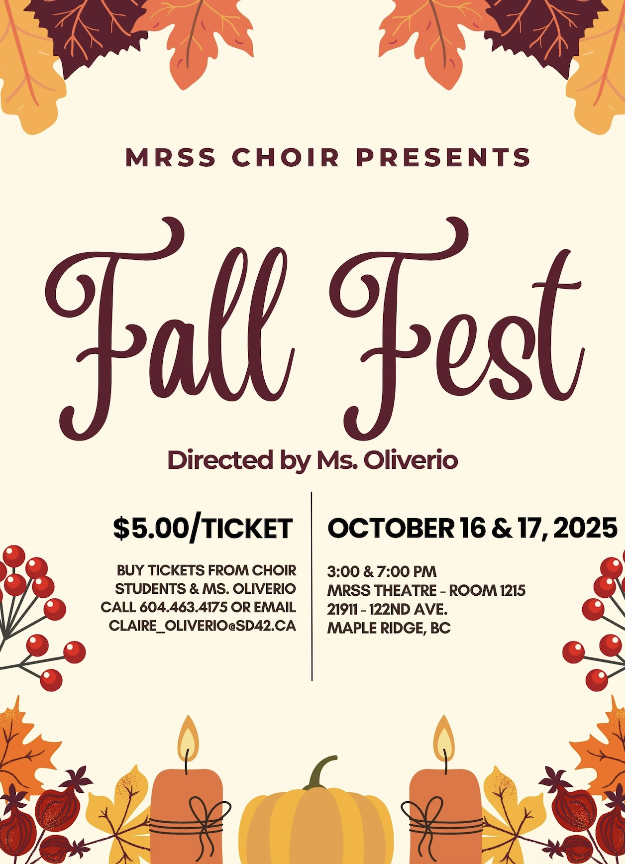 October 2, 2025MRSS Fall Choir Concerts We’re very excited to host our first concerts of the school year on October 16 & 17 with performances at 3pm and 7pm both days. Please join us for an evening of beautiful music!