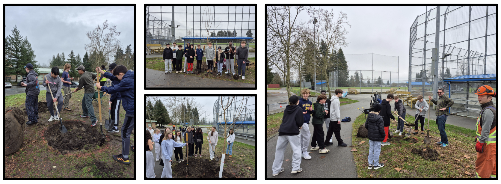The Hunter and Page Grade 8 Pod partnered with the Municipality of Maple Ridge for a meaningful tree-planting project on the THSS grounds. Students worked alongside municipal staff to plant new trees while learning about local ecosystems, sustainability, and the long-term impact of environmental stewardship. This hands-on, community-based experience allowed students to contribute directly to the care of their school environment while building a sense of responsibility, teamwork, and connection to the broader Maple Ridge community.