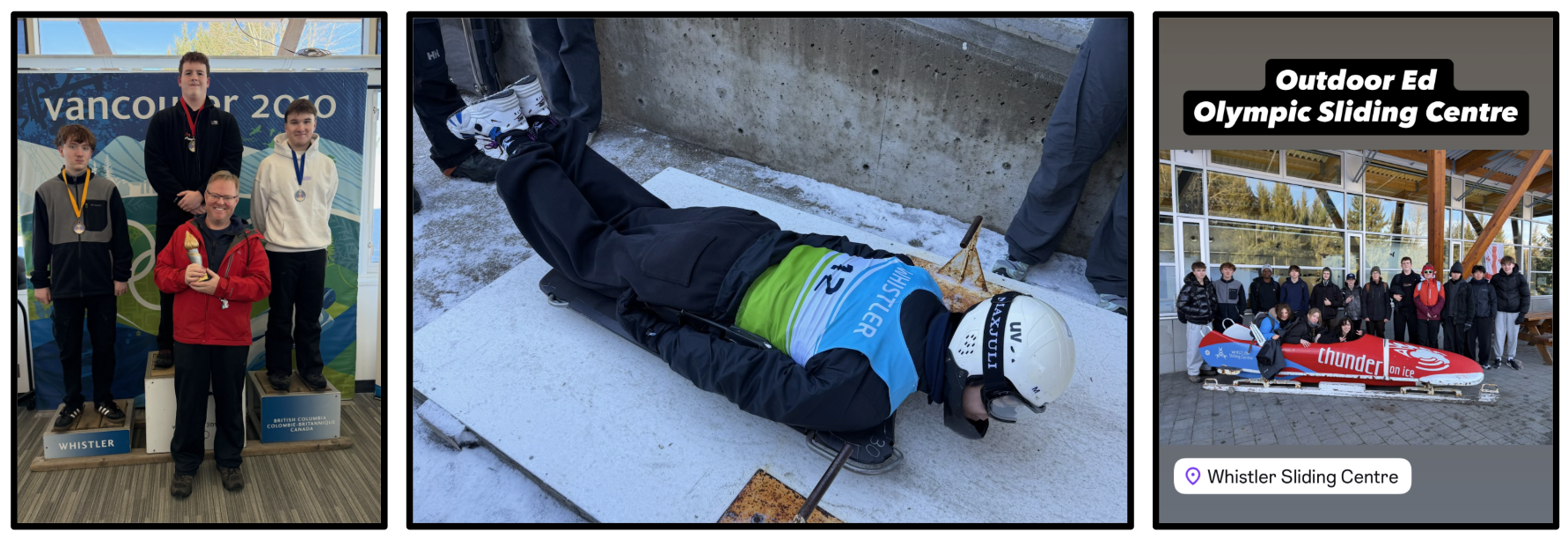 Outdoor Education students experienced an unforgettable and truly unique day at the Whistler Olympic Sliding Centre with Mr. Williams. Students learned about the sport of bobsleigh and skeleton, explored the history of the Olympic venue, and had the rare opportunity to experience the track firsthand. The day combined experiential learning, personal challenge, and adventure, giving students insight into elite sport, physics in motion, and the importance of courage, focus, and trust—an experience few students ever get to have.