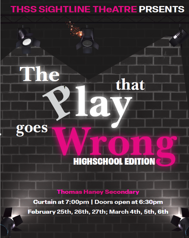 You should come and see our show if you enjoy physical comedy, silly humour, and non-stop action from beginning to end. This show keeps you engaged from the moment you step foot into our theatre. It’s the perfect night for a chance to get away from the everyday and immerse yourself into a show that will keep you laughing the whole time. With high energy performances, hilarious surprises, and moments you’ll talk about long after our show closes, this is a show you won’t want to miss! Don’t miss the chance to come see The Play That Goes Wrong, put on by Thomas Haney Sightlines Theatre.