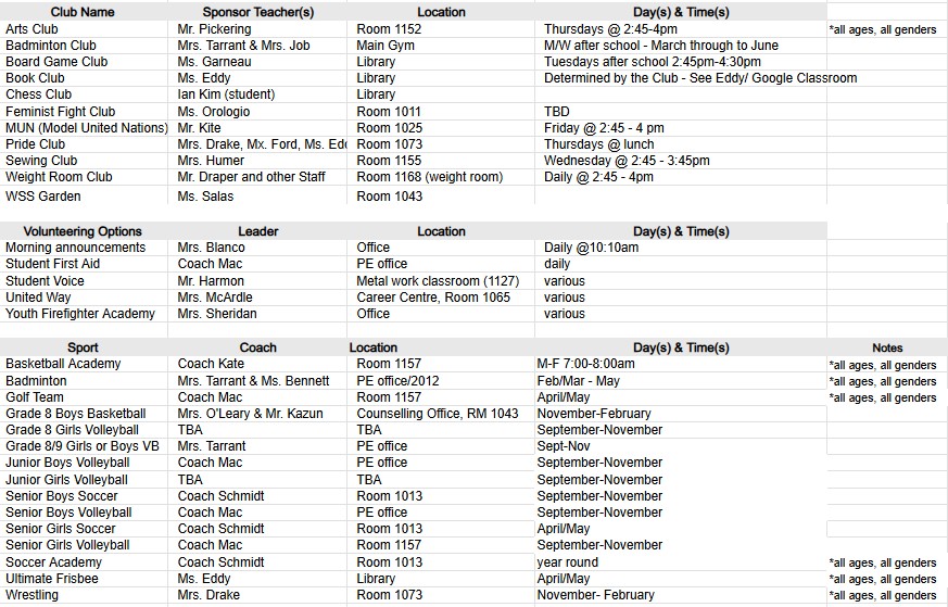 - Ski & Snowboard Club – Mr. Harmon & Heather MacDonald